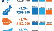 The map shows the median expected price change in the next 12 months for each state based on the May–July 2015 RCI surveys.10 REALTOR® respondents from Colorado and Florida had the most upbeat price expectations, with a median expected price growth in the range of five to six percent. In Washington, Oregon, Nevada, Texas, and Georgia,…